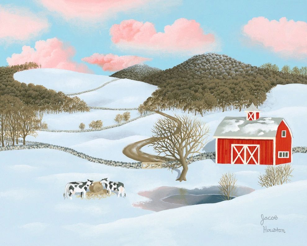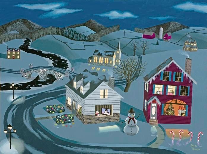 It was time to create another family Christmas card, so out of my imagination sprang this quiet country scene. "Countryside Christmas" is a tribute to my grandmother, Louise Houston, who passed away in August. She can be seen sitting in her favorite chair, watching Frosty create his magic. I'm hoping that 2014 is a magical year for all of you. (completed November 2013)