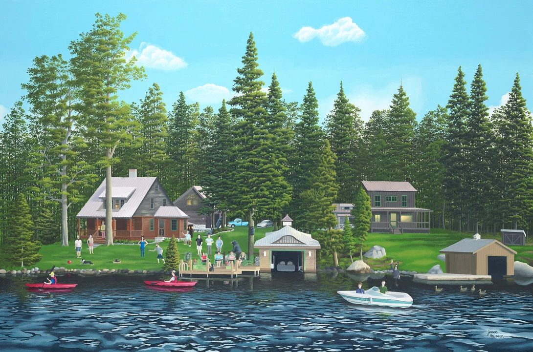This painting, commissioned by extra special friends, is close to my heart. My family has spent time at this camp complex every summer for as far back as I can remember. A gorgeous setting combined with wonderful friends equals good medicine for the soul. By the way, I put myself in the kayak if you are wondering. (completed December 2020)