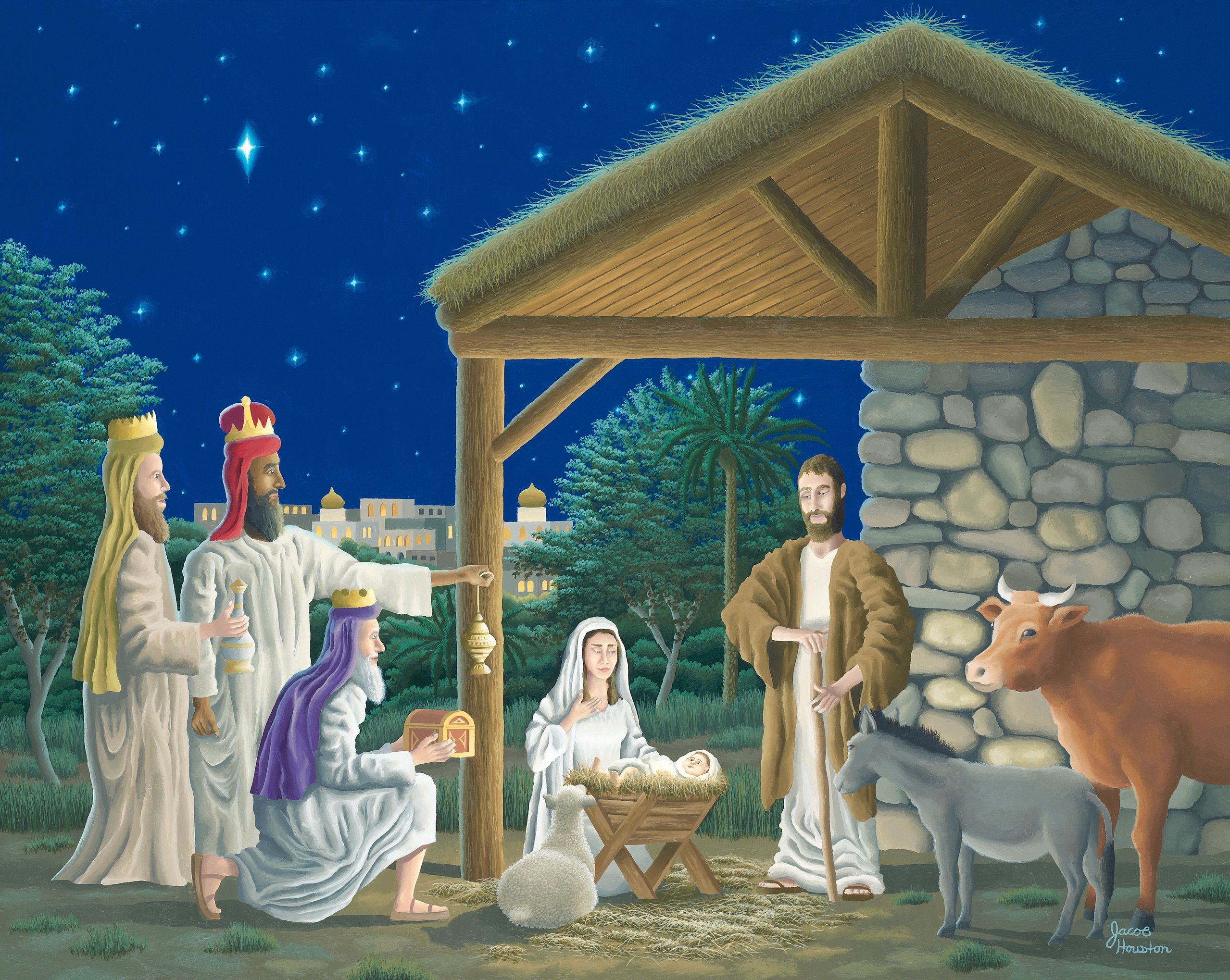After seeing all of the greatest artists' religious paintings and sculptures during a trip to Italy, I was inspired to paint a setting with Jesus at his birth.