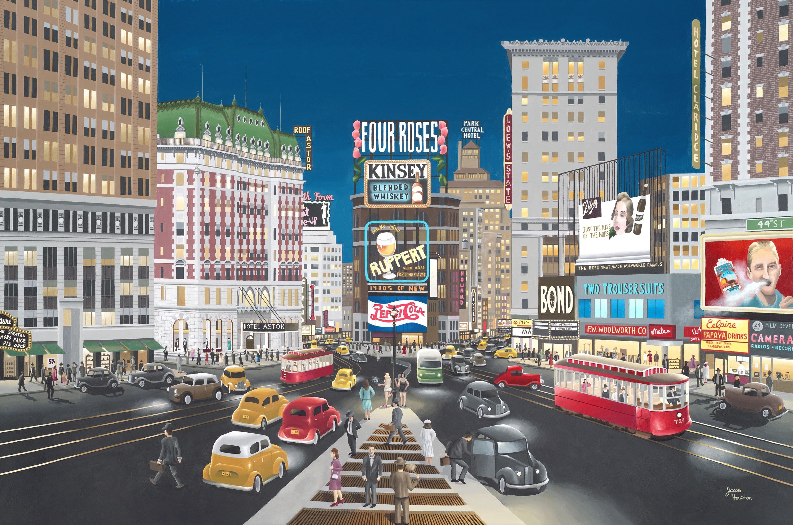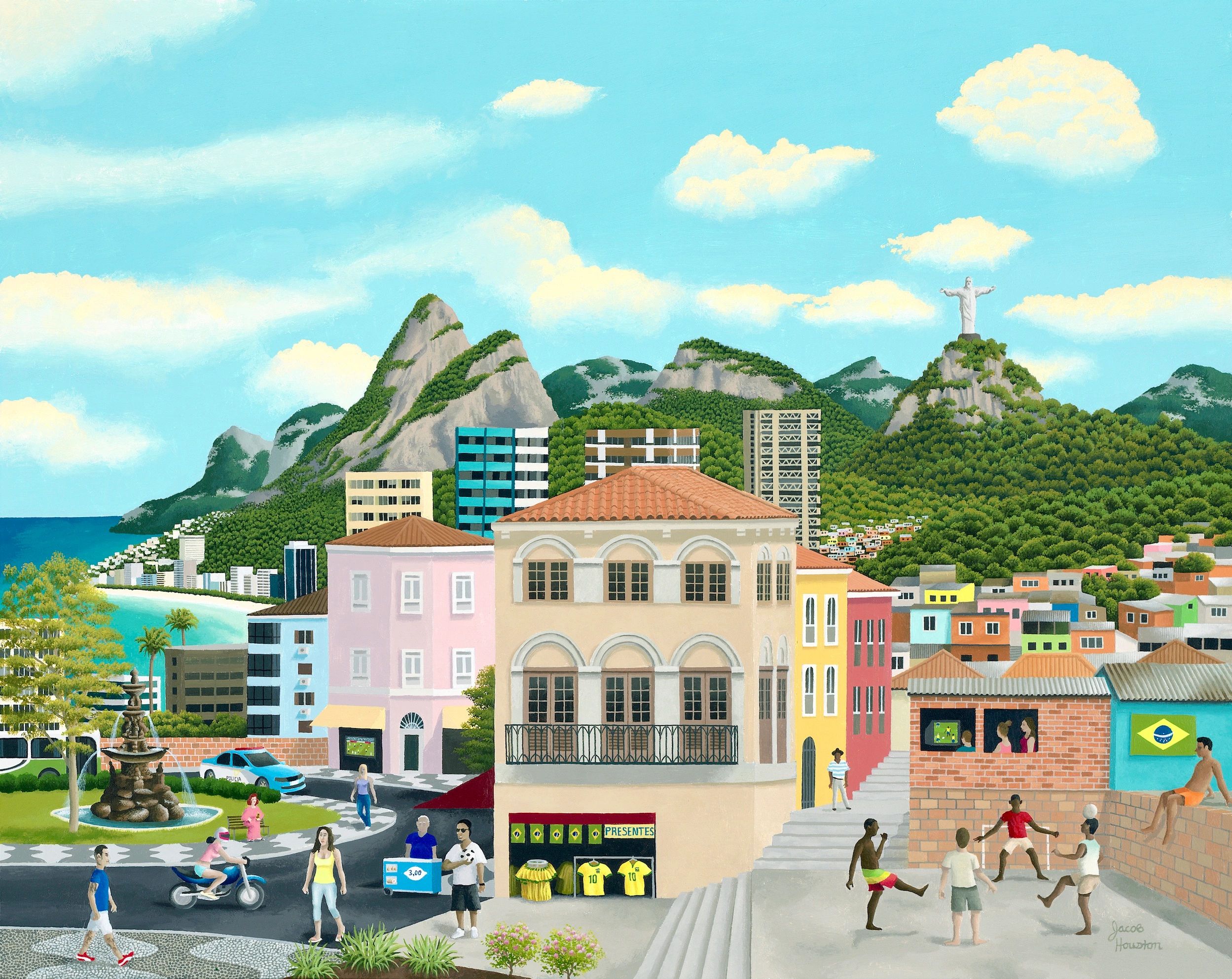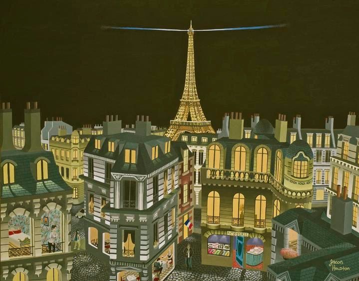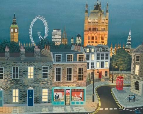 I have always thought that London was awesome, although I hadn't had the opportunity to visit it yet. I wanted to make the painting include a personal level, which the tea shop does with a memorable British man that we met in France long ago, and a British singer that I admire. This painting won an award in The Artist's Magazine Art Competition in 2016 (completed July 2015)