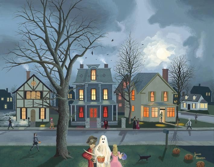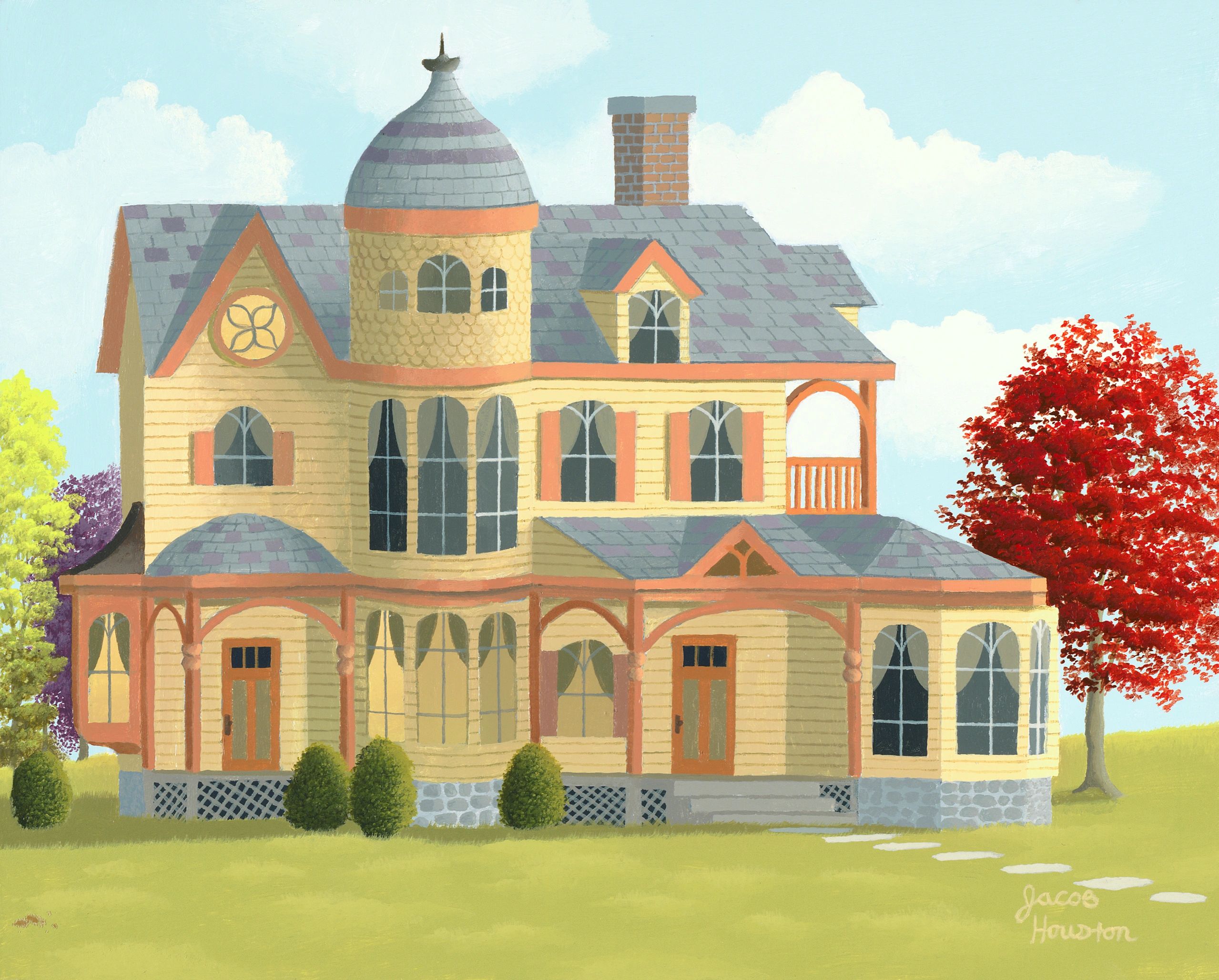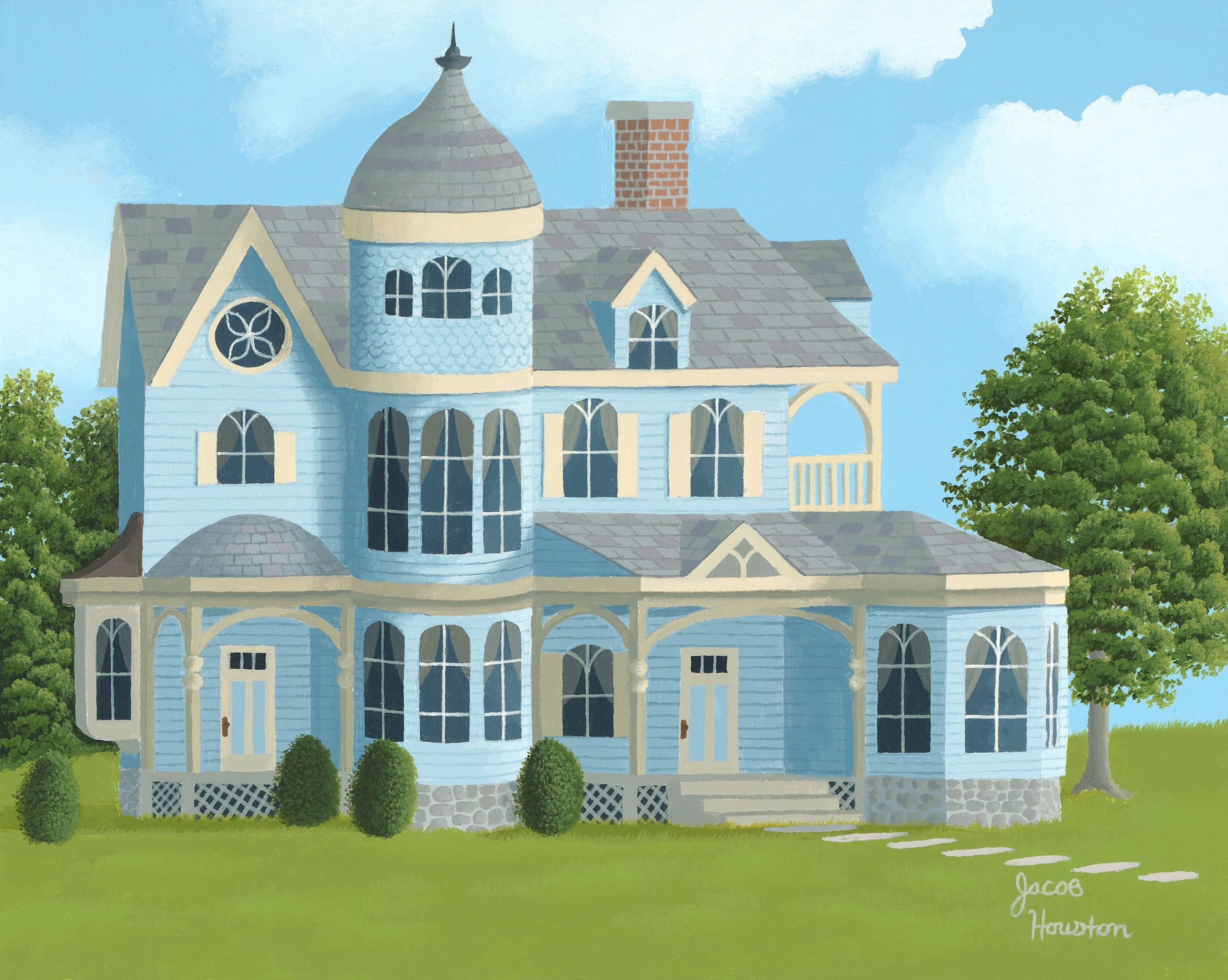 My most recent commissioned piece required some haunting vision in order to revamp this normally charming home into a frightful autumn scene. (completed 2014)