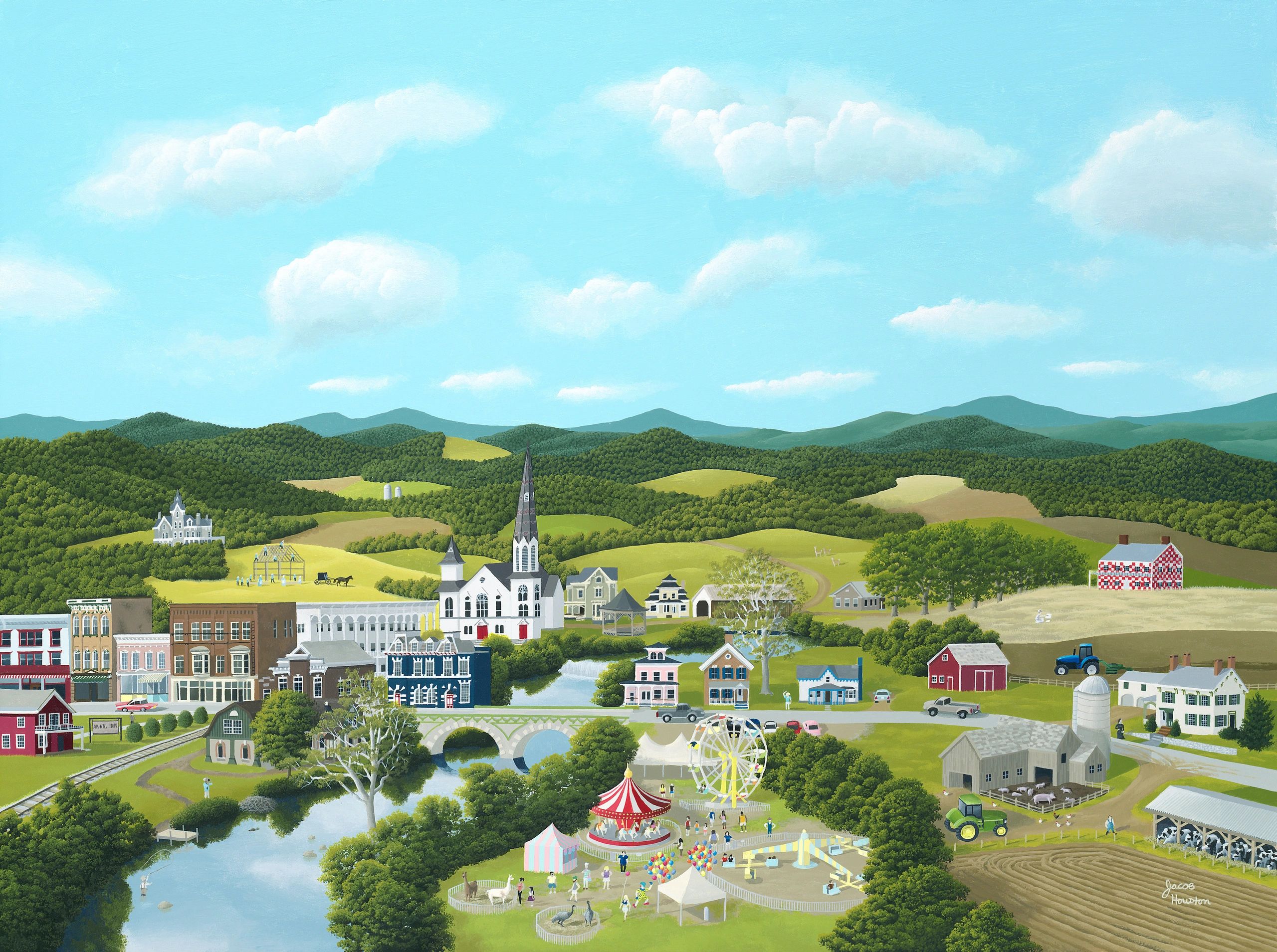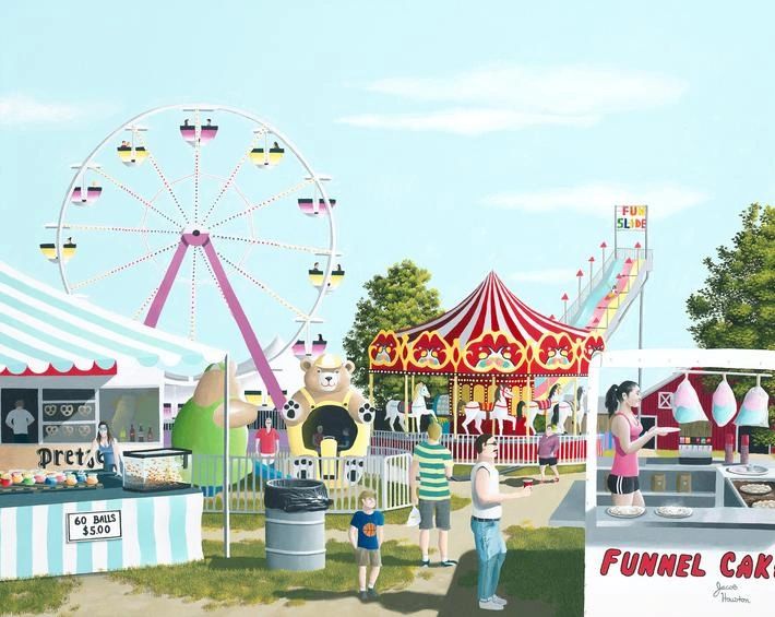For anyone who looks forward to the County Fair each summer, this painting is for you. I hope that it brings memories of the sights, smells, and sounds of the midway. For those of us in the area, it is at the Washington County Fair that we all eat way too many french fries, fritters, and maple milk shakes, and then jump on the rides, visit the cow barns, take in a show, and most of all catch up with friends.