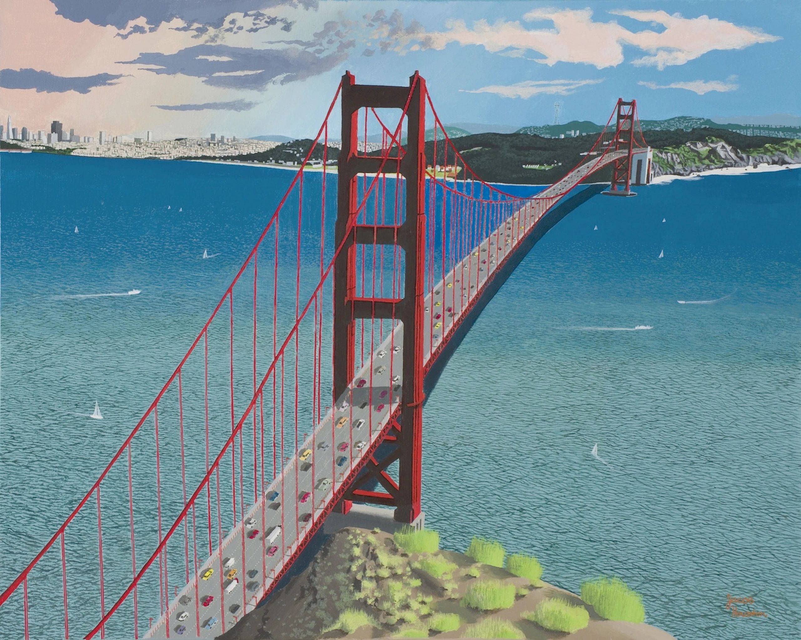 From Maine, I decided to head all the way to the Pacific coast for my newest painting, entitled "The Bridge to San Francisco" (otherwise known as the Golden Gate Bridge). Bridges fascinate me, and this particular one with its bright dressing is especially magnificent. Mr. Morris at GCS encouraged me to paint the George Washington Bridge years ago...I promise that it is still on my "futures" list! (completed March 2013)