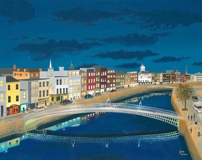 A recent vacation to Ireland inspired me to recreate the beauty of Dublin in the evening. The Liffey River meanders through the center of this beautiful city; its bridges are all unique and fun to cross. The Ha'penny pedestrian bridge was built in 1816. Ireland is one of my most favorite countries with friendly, helpful people and incredible scenery.