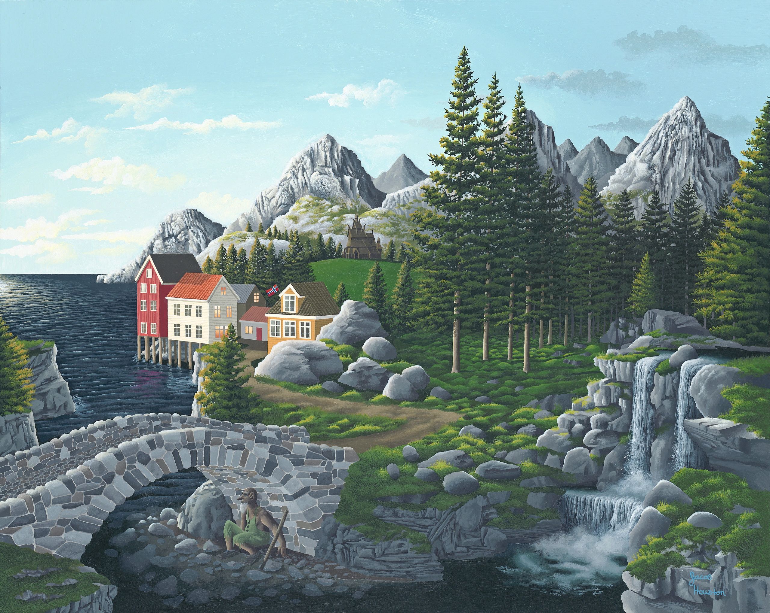 Trolls have mystified and intrigued me ever since I hopped onto the Norway ride in EPCOT at a tender age. Here's my vision of how I might run into a troll if I were ever fortunate enough to travel to Norway. Mr. Troll might look intimidating, but I think we could strike up a friendship eventually. Or at least I might convince him to let me cross the bridge..