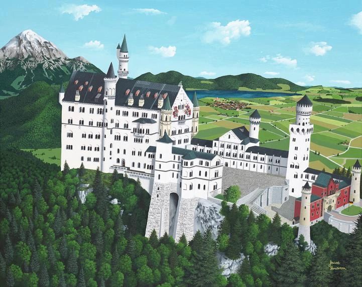 As my followers probably know, architecture is my favorite challenge as an artist. This time I chose my favorite castle in the world, Neuschwanstein Castle in southern Germany. Known as the "fairy tale castle", it gave me lots of challenges with its turrets, stonework, windows, and other unique features. I also decided to shake things up by painting it from a different perspective than it is usually shown in. (completed November 2016)