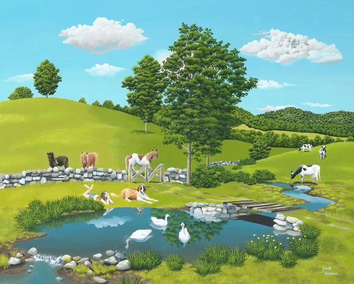 I dedicate this to my mom, who also acts as my manager. She has shared many tales of growing up on the farm with 7 siblings. To escape the chaos as a young girl, my mom would head down to the pond with the family's St. Bernard, Heidi, to watch the ducks. My much beloved grandmother, Janet, passed away at an early age, but her influence on all of her children remains to this day. She is looking down from one of the clouds above the farm and family she loved.